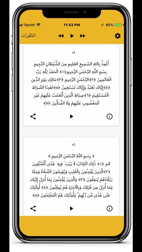 تطبيق المأثورات هو مجموعة من الآيات القرآنية المهمة والأحاديث الصحيحة مُقدَّمة فى شكل ورد. الآيات والأدعية المختارة لها تأثير روحى ، خاصة فى تزكية النفس.