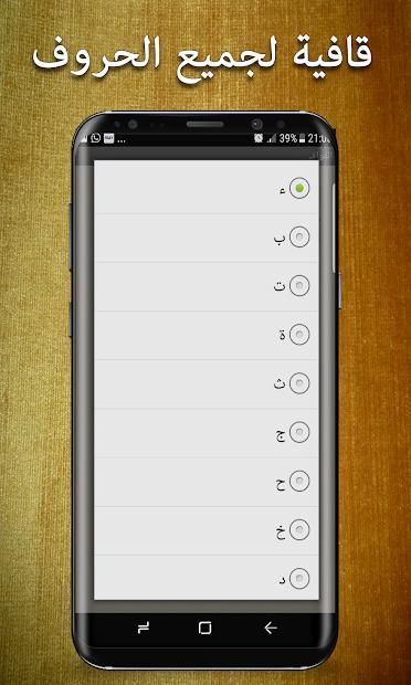 Yang pertama dari jenisnya dalam sejarah seluruh aplikasi. Sekarang mudah untuk mendapatkan klik untuk membawakan syair ke puisi Arab. Cukup masukkan alfabet terakhir dari kata yang Anda inginkan sistem yang akan dibuat - dan Anda akan segera melihat ratusan rima pada rima yang sama disebutkan