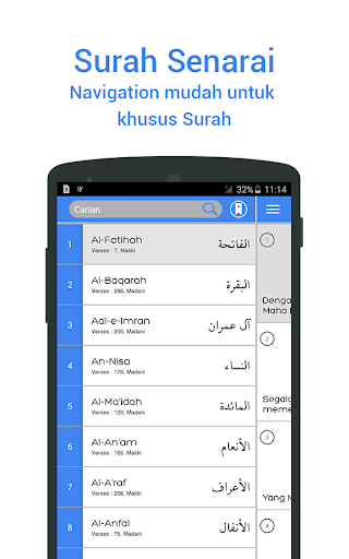 Al Quran dan terjemahan bahasa Melayu a dalah aplikasi percuma untuk peranti android. Permohonan al quran 30 juzuk adalah versi digital lengkap dalam bahasa Melayu. Al quran melayu tertanam dengan ciri-ciri yang berbeza, Dalam al quran mp3 anda mendengar quran lengkap dalam bhasa malayu.