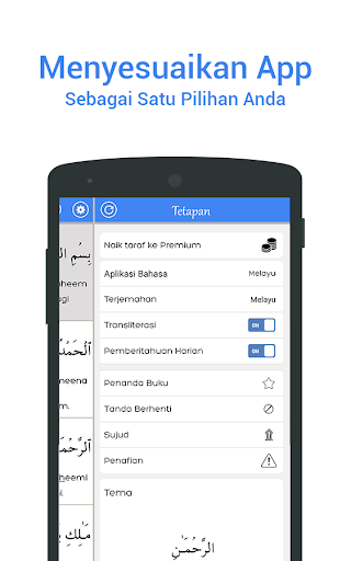• Tetapkan pemberitahuan dari aplikasi untuk mengingatkan anda tentang masa untuk bacaan Al-Quran.