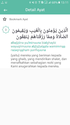 Di aplikasi ini ada fitur untuk menyimpan setiap ayat alqurannya loh yaitu fitur bookmark ayat,