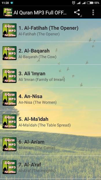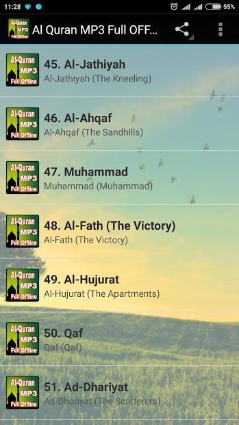 Al Quran MP3 Penuh Offline Application. Semua bacaan Quran di App ini bebas untuk download dan menumpahkan sebagai MP3.