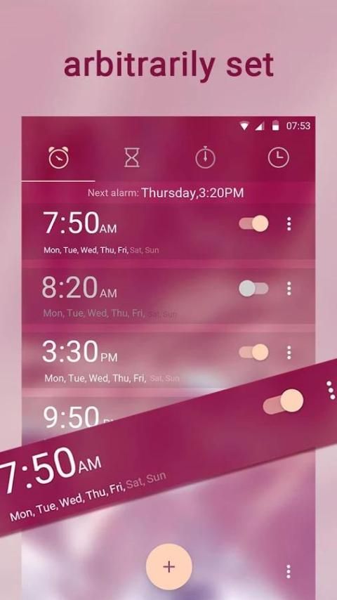 Dengan dukungan untuk beberapa alarm simultan. Setiap alarm dapat lebih disesuaikan dengan label dan berbeda. dan fitur Smart Tunda yang membantu Anda keluar dari tempat tidur. Ini benar-benar gratis untuk digunakan.