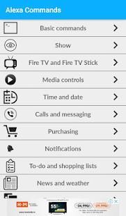 Aplikasi ini menyediakan daftar lengkap perintah untuk Amazon Echo dengan Alexa asisten virtual. Semua perintah dikategorikan.