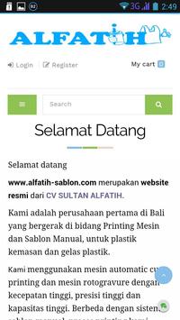 Menggunakan aplikasi ini, anda akan lebih mudah belanja pada alfatih-sablon.com. Karena fitur chat akan lebih mudah bertanya detail pada kami. Dan anda bisa cek pesanan pada daftar transaksi, di tambah lagi, anda dengan mudah mengetahui jadwal pengerjaan produk pesanan anda.