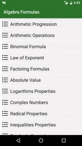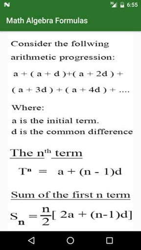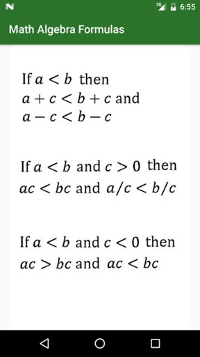 This app contains commonly used algebra formulas. with free of cost.