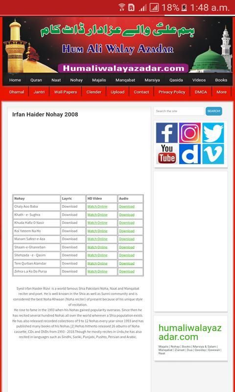 www.humaliwalayazadar.com adalah Web Domain, Yang Terkenal untuk Mempromosikan Azadari di internationaly.