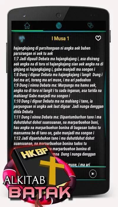 Didalam aplikasi ini kami menyediakan Alkitab Batak Toba HKBP Lengkap beserta Pemutar Musik Audio Huria Kristen Batak Indonesia terlengkap.