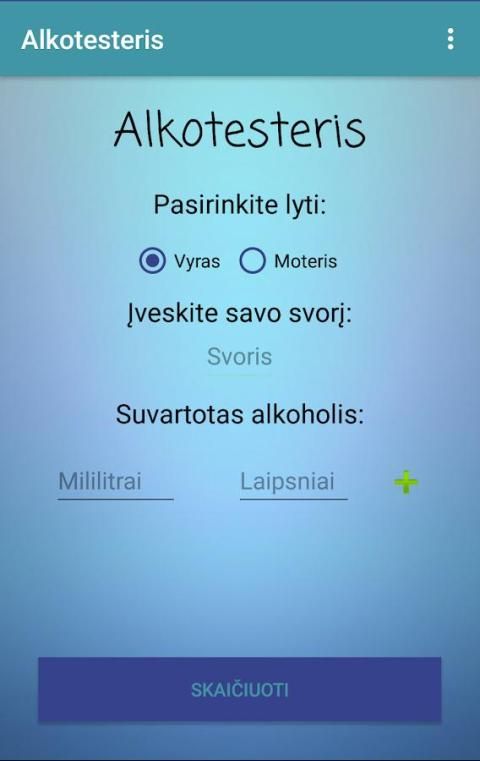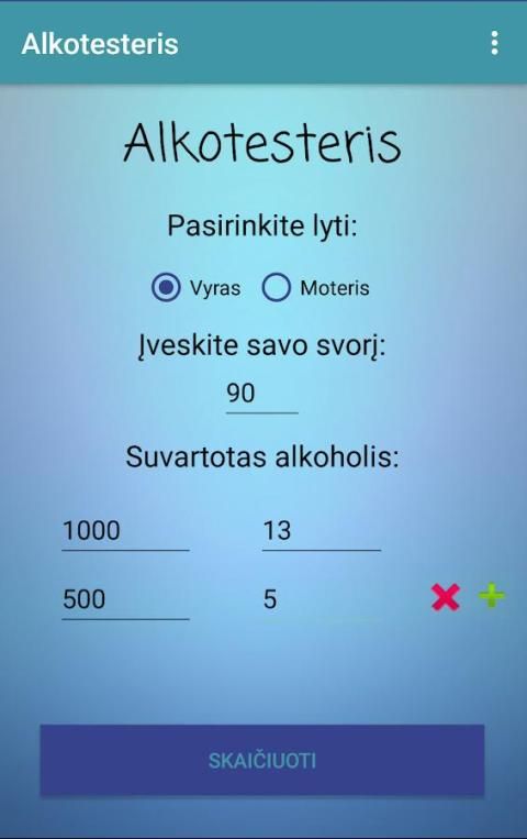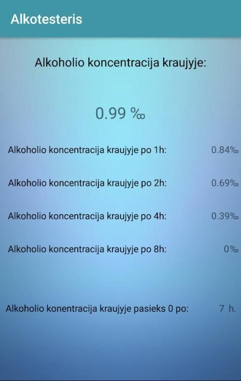 Dengan gadget ini untuk menemukan jika Anda mabuk. "Alkotesteris membantu Anda memutuskan apakah Anda bisa mengemudi. Hal ini juga menunjukkan ketika penuh terbangun, dan jumlah ppm setelah jangka waktu tertentu. Pilih jenis kelamin Anda, masukkan berat badan Anda, dan jumlah alkohol yang dikonsumsi dan akan menunjukkan berapa banyak tubuh Anda adalah ppt. Perhatian! "Nafas" tidak selalu menunjukkan dosis yang tepat per mille. Jika Anda minum, tidak mengendarai mobil yang lebih baik! Untuk komentar atau ide-ide, silakan hubungi agobal.agobal@gmail.com
