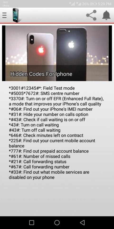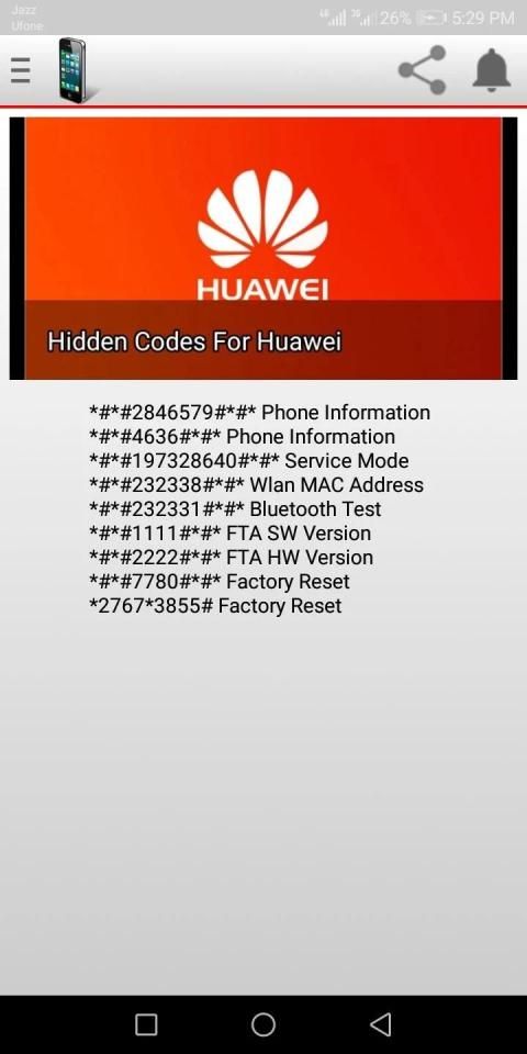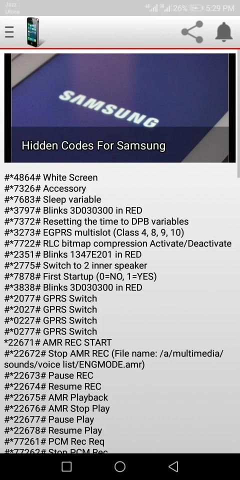 IMPORTANT! Some manufacturers not allow the use of these codes and they may not work on your device. By using secret codes you can change some of your device settings. Use at your own risk!