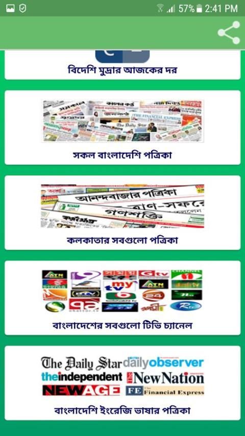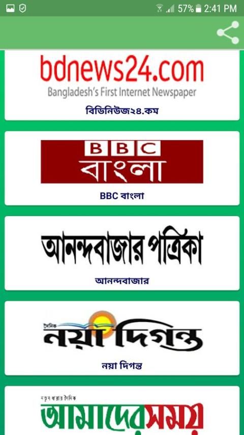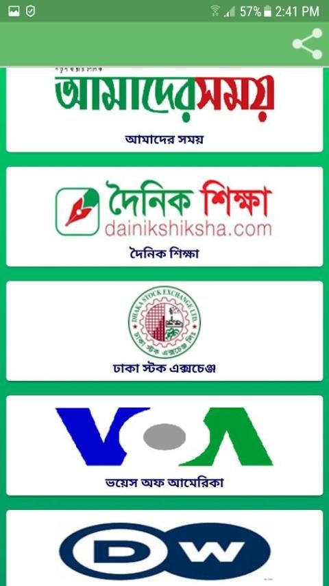 Bdnews24 Bangla (bdnews24 adalah salah satu situs berita terbesar di Bangladesh.), DMP Berita (portal Berita dari Dhaka Metropolitan Police.), Banglanews24, banglatribune, jagonews24, Breaking News, Satu Berita BD (Jessore), Berbagi Bazar Berita, Stok Bangladesh, Kushtia News.