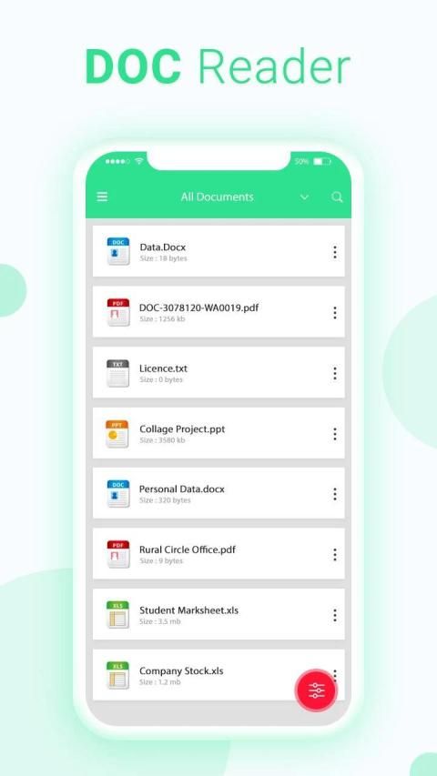 - Penampil kata yang mudah dengan penampil dokumen (DOC / DOCX).