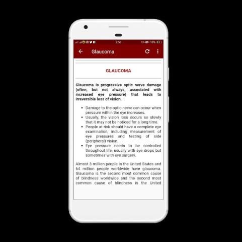 The approach used in the creation of this application is simple and direct, effort has been made to provide all the relevant information needed to understand eye problems. The information provided is well filtered and revised to accommodate the need to make it as easy to the users as possible.