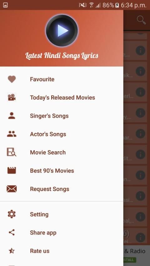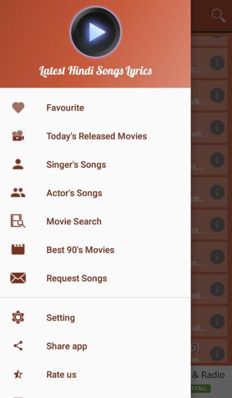 - Anda dapat memeriksa Bollywood Film Lirik Lagu di tab lirik.