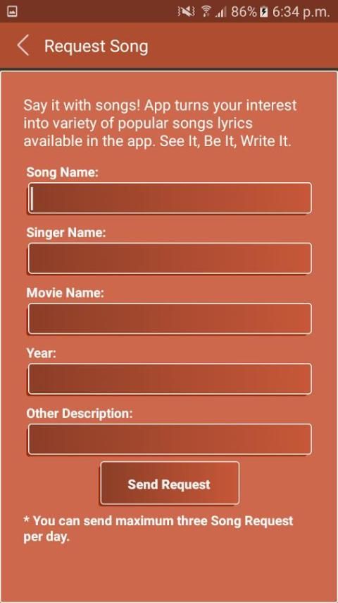 Send your missing lyrics request