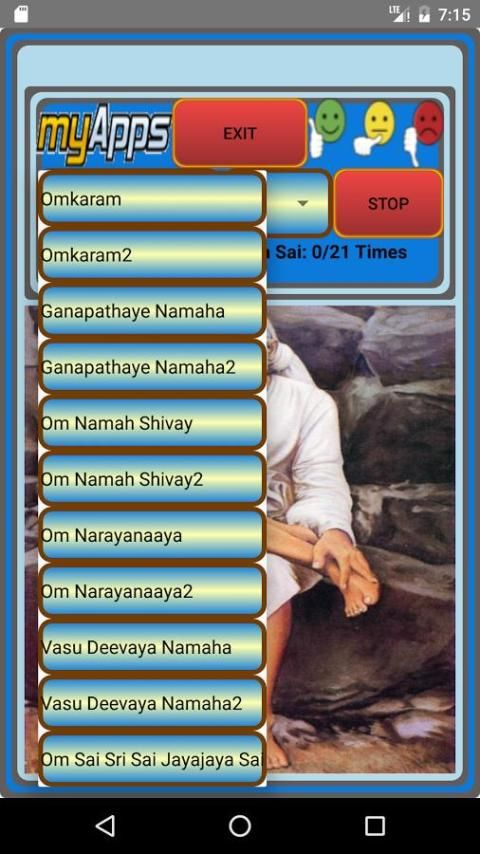 Pilihan yang tersedia untuk Dengarkan chantings ilahi untuk 11/21/36/108/1116 kali.
