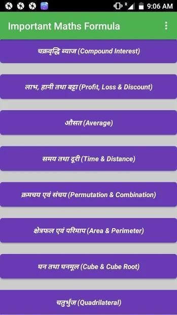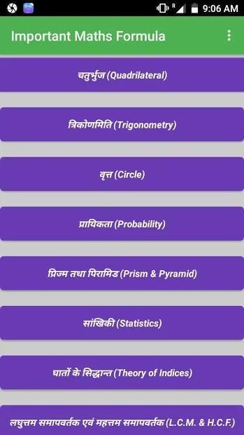 Formula Matematika & Trick dalam bahasa Hindi