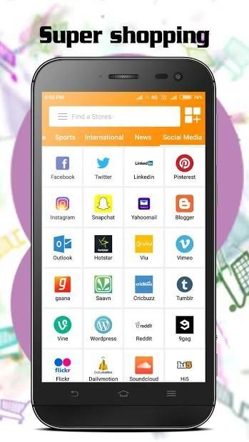 Tapzo, Nykaa, Big Basket, Amazon, Flipkart, Bluestone, AliExpress, Snapdeal, Shopcluses, Naaptol. Voonik, Quikr, Click.in, IRCTC, BookMyShow, TataCliq, Homeshop18, AJIO, Koovs, Craftvilla, Abof, Lime Road, Limeroad, Ali Express, FirstCry, Goibibo, bigbasket, paytm, bhim, And Many More 150+ shopping sites …….