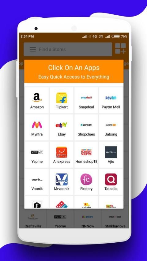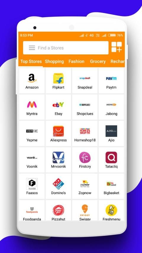Aplikasi ini mencakup semua situs web belanja populer di India termasuk flipkart, Ebay, AJIO, TATA Cliq, amazon, Jabong, myntra, shopclues, snapdeal, Paytm.