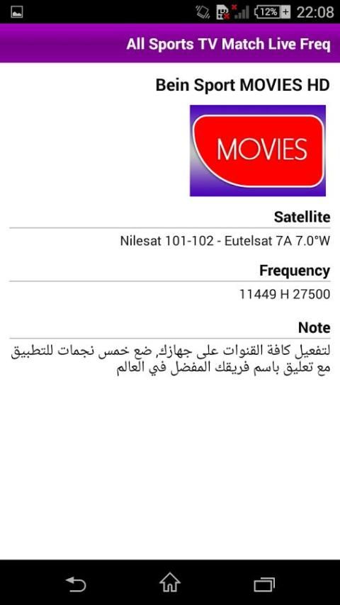 Disclaimer: Aplikasi ini tidak menawarkan sepak bola hidup Streaming hidup di telepon tapi memberikan frekuensi semua saluran yang menyiarkan pertandingan