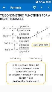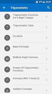 All essential Math Formulas for all math students. Offline content. You don't need internet to read formulas. You will get 1000+ math formulas and equations like Algebra formulas, Geometry formulas, Analytical Geometry formulas, Derivation formulas, Integration formulas, Trigonometry formulas, Laplace transform formulas, Probability formulas, that will help all students & specially those who are preparing for competitive exams.