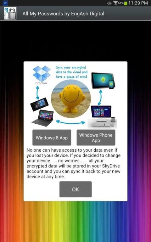 {Semua Password saya} adalah yang paling profesional password terbesar aplikasi yang dibuat untuk Android, jendela & perangkat Windows Phone, semua data Anda akan disimpan dengan naskah yang sangat dienkripsi untuk memastikan privasi.