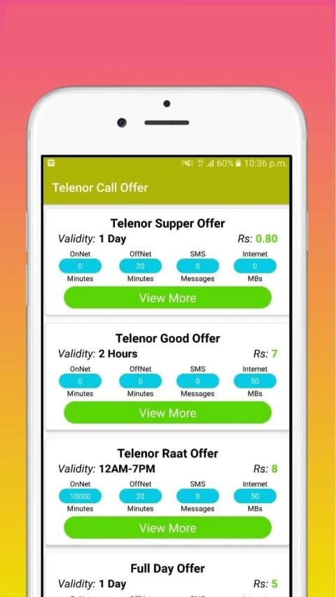 All Monthly-Weekly-Daily and offer All In One packages of Telenor