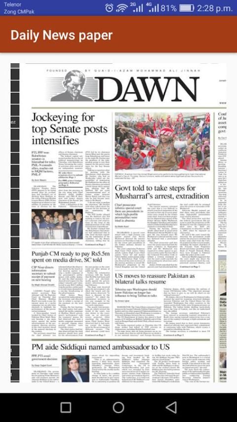 Semua surat kabar Pakistan termasuk dalam aplikasi ini.