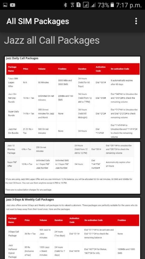Semua Paket SIM, telenor, Jazz, Ufone, PTCL, Warid dan Zong informasi baru