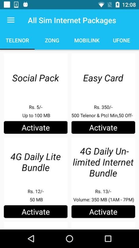 Aplikasi ini mengagumkan telah dirancang khusus untuk semua pengguna jaringan selular di Pakistan. Aplikasi ini menyediakan semua Informasi dari semua Paket Internet untuk Ufone, warid, Jazz, Zong dan Pengguna Telenor Sim. Dengan pengguna aplikasi ini dapat dengan mudah menemukan informasi tentang semua jenis paket internet ditawarkan untuk sim apapun. Hal ini juga memberikan informasi seperti mbs tersisa dan saldo rekening. Fitur yang paling penting dari aplikasi ini adalah bahwa Anda dapat dengan mudah mengisi ulang kartu sim Anda dengan hanya satu kali klik dan dapat berlangganan semua paket dengan hanya mengklik paket keinginan. Di sini semua informasi mengenai paket diperbarui secara teratur sehingga Anda tidak perlu khawatir tentang tinggal diperbarui dengan Paket Internet setiap sim.