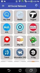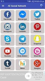 This apps contains all popular social networking sites and one can access your favorite social media such as Facebook Twitter Instagram Pinterest LinkedIn Telegram Snapchat Tumblr Baddo hitwe Skout Twoo Mico Reddit AOL ICQ Meet Me Digg Imgur Tuenti etc. and many more through this app.