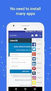 Why install tens of individual apps for each social network when you can access all of them in only one app, that is Social Media app.All social media apps in one app.All social network app are together in itself.