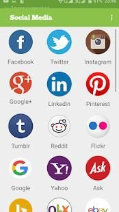 Ini berisi semua situs jejaring sosial populer dan satu dapat mengakses media sosial favorit Anda seperti Facebook Twitter Instagram Pinterest LinkedIn Telegram Snapchat Tumblr Baddo hitwe Skout Twoo Mico Reddit AOL ICQ Meet Me Digg Imgur Tuenti dll dan banyak lagi melalui aplikasi ini.