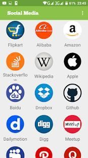 It contains all popular social networking sites and one can access your favorite social media such as Facebook Twitter Instagram Pinterest LinkedIn Telegram Snapchat Tumblr Baddo hitwe Skout Twoo Mico Reddit AOL ICQ Meet Me Digg Imgur Tuenti etc. and many more through this app.