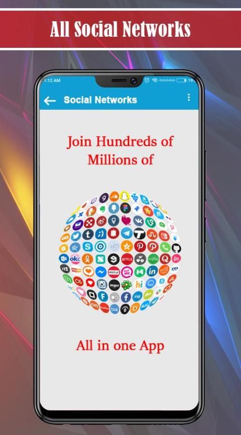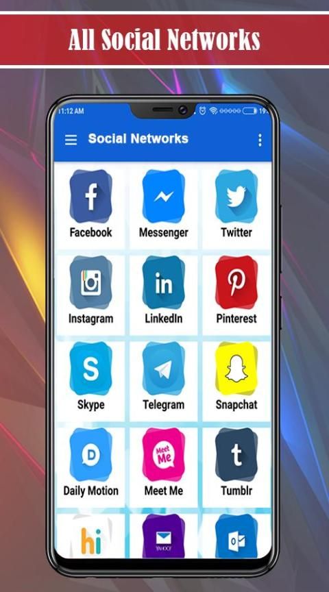 Aplikasi Jejaring Sosial All-in-One menyediakan akses mudah ke semua jejaring sosial yaitu: Facebook, Twitter, Instagram, Snapchat, whatsapp dan banyak lagi.