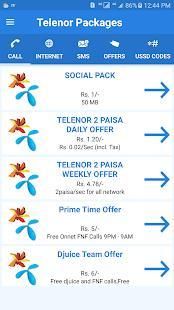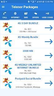Sekarang aktifkan semua paket dengan single dan juga tidak perlu mengingat kode yang sulit karena sekarang ini sudah dilakukan oleh Anda aplikasi paket Telenor Pakistan. Paket-paket ini terdiri dari penawaran Setiap Jam, Harian, mingguan, bulanan dan tahunan, juga terdiri dari penawaran prabayar dan penawaran pascabayar lainnya. Paket Gratis yang ditawarkan oleh Telenor juga tersedia di aplikasi sesuai dengan kebijakan Telenor.