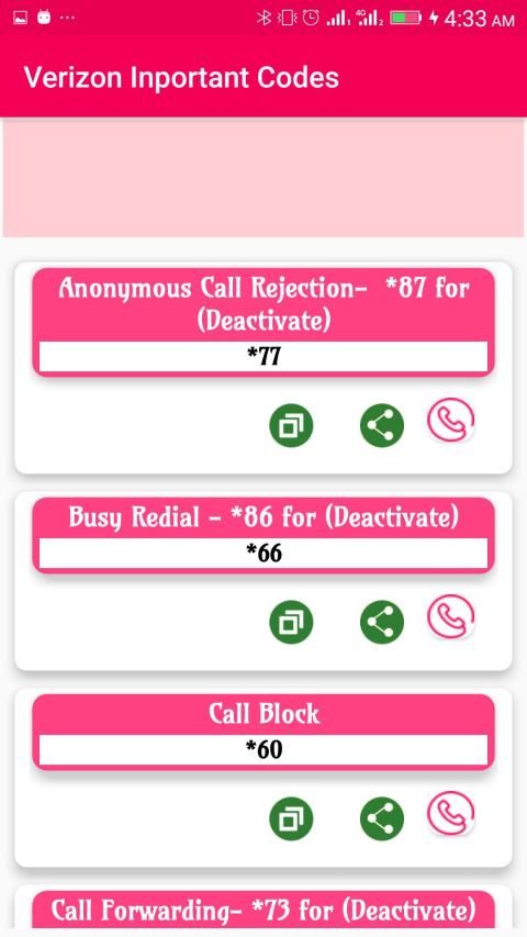 • Verizon Codes Call Block Code – *0 (Activate)