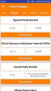 Tidak ingat kode sulit karena sekarang semua dilakukan oleh paket Ufone Anda aplikasi gratis untuk Anda. Keindahan app itu offline dan diperbarui secara teratur. Paket-paket ini terdiri dari penawaran tahunan Per Jam, Harian, mingguan, bulanan dan, juga terdiri dari penawaran prabayar lainnya dan menawarkan pasca bayar