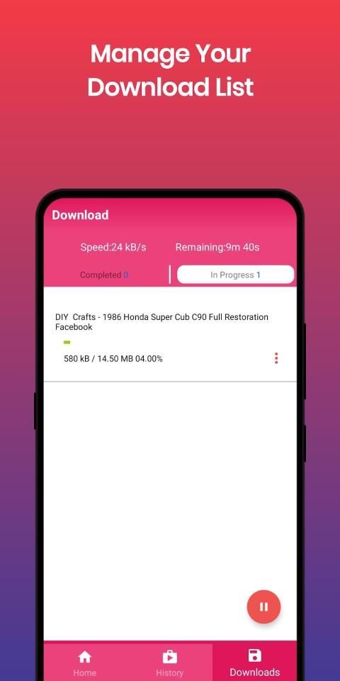 Semua Video Downloader 2020 otomatis mendeteksi video, Anda dapat mengunduhnya hanya dengan satu klik. Manajer unduhan yang hebat memungkinkan Anda untuk menjeda dan melanjutkan unduhan, mengunduh di latar belakang dan mengunduh beberapa file secara bersamaan. Gunakan pengunduh video HD untuk mempratinjau video terlebih dahulu, unduh cepat dan mainkan offline.