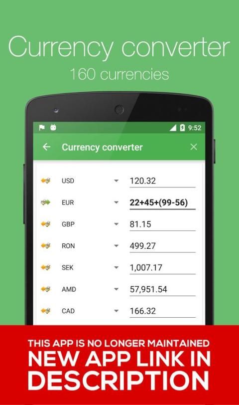 • Konverter mata uang dengan 161 mata uang tersedia secara offline