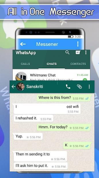 - App free to install. You can have whatapps and hangouts including all messengers install on your device for accessing from one place