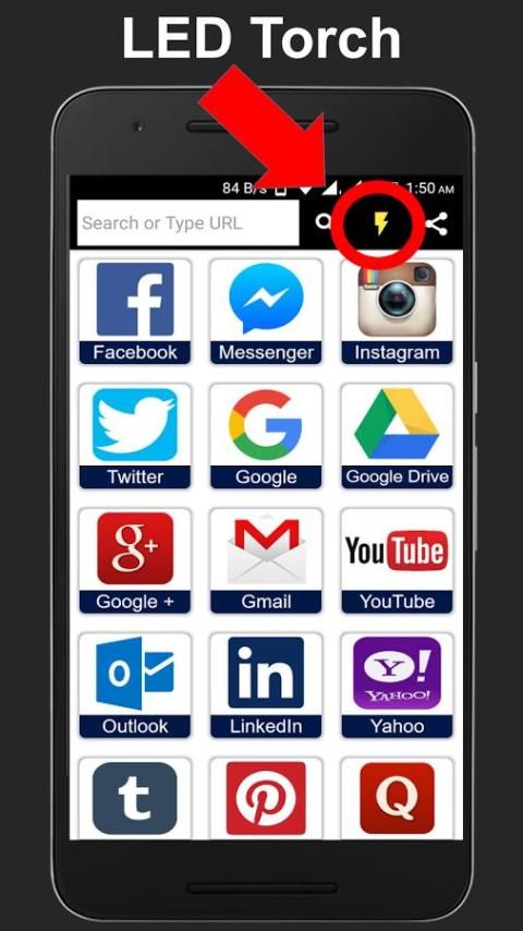 App ini juga termasuk LED Senter Obor & kecil Web Browser