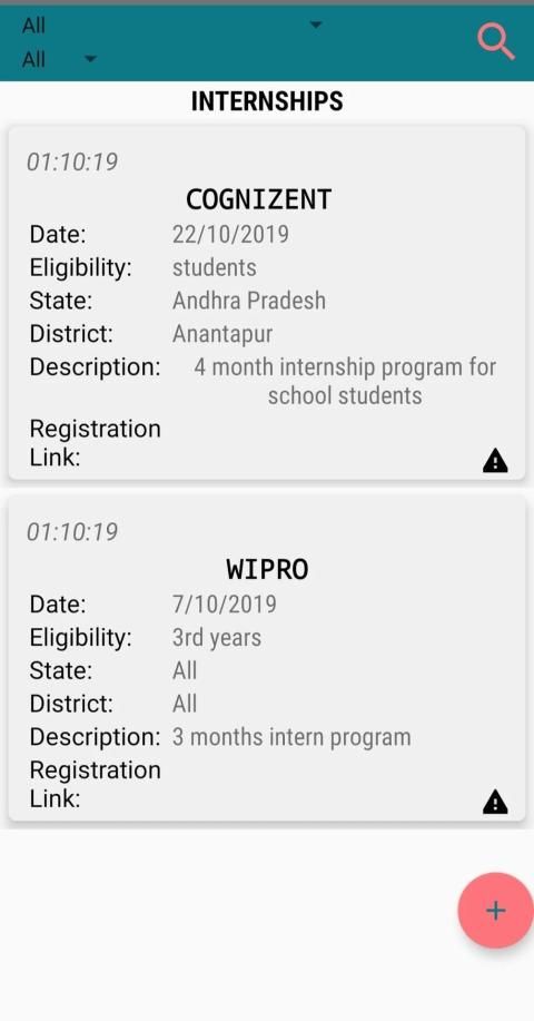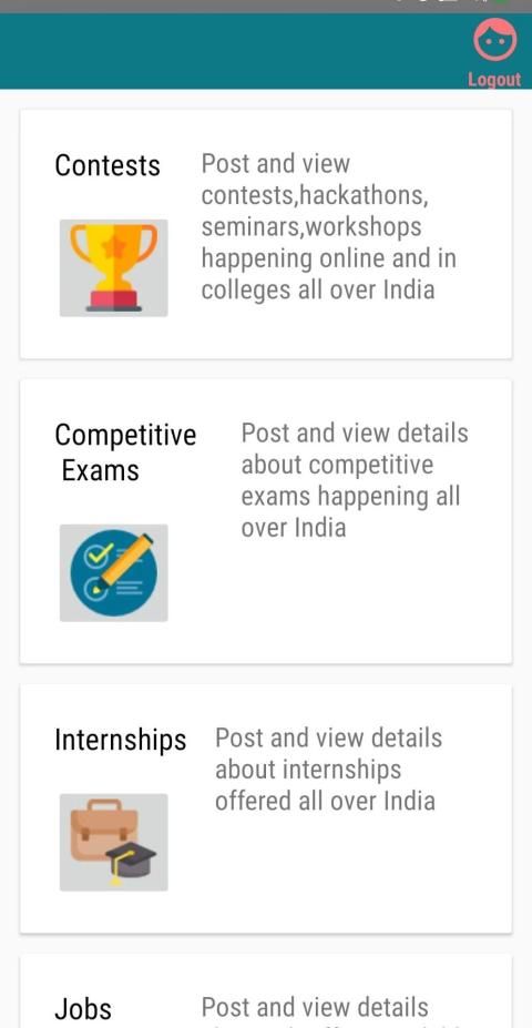 This app contains details about various inter-college competitions, contests, hackathons, workshops, seminars, and competitive exams and also internship and job offers available at various places in India.