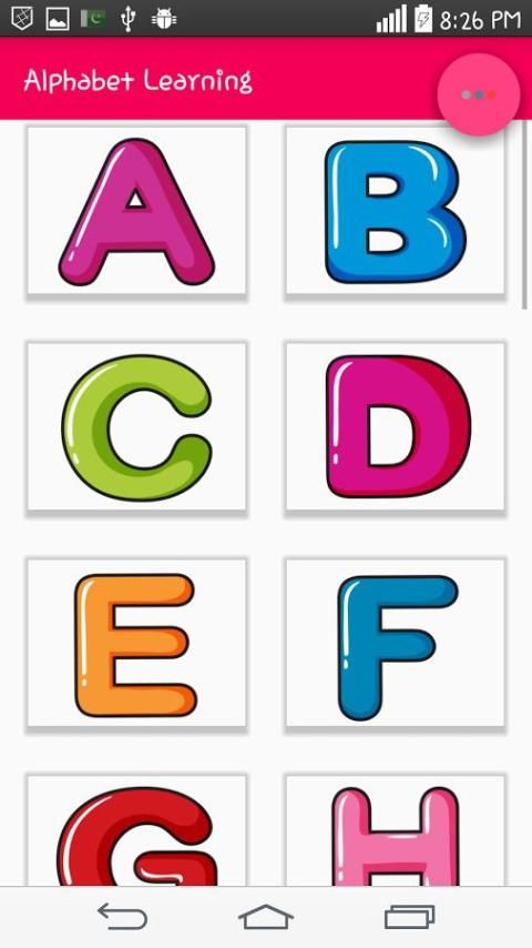 Aplikasi ini berisi suara untuk setiap alfabet yang akan bermain dengan mengklik alfabet. Aplikasi ini terbaik untuk belajar anak-anak serta untuk belajar bahasa Inggris.