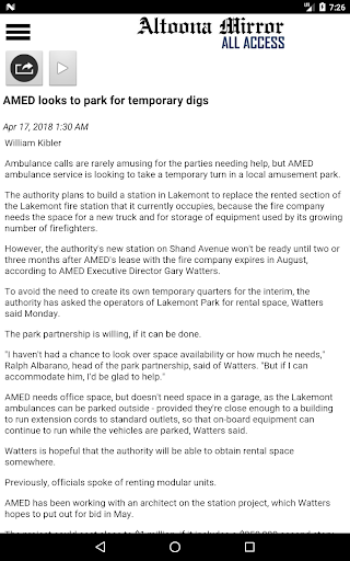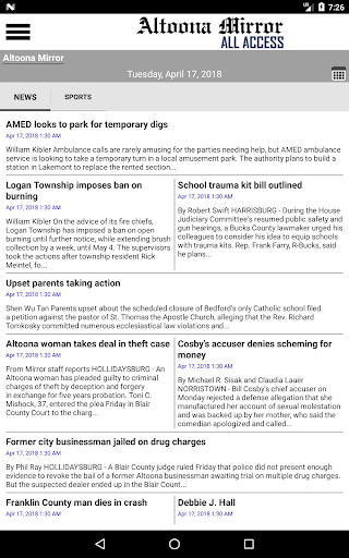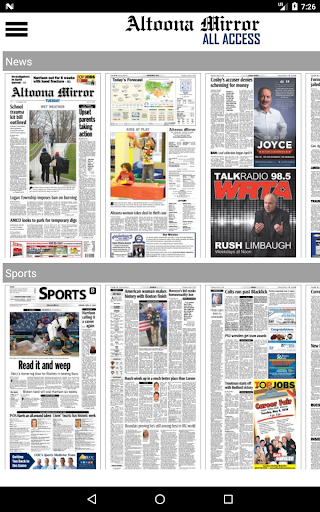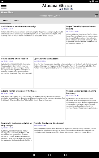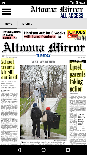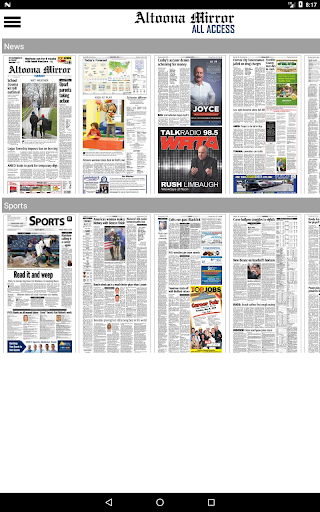 Tetap di atas berita dari Altoona dan daerah sekitarnya dengan menerima versi cetak lengkap dari Altoona Mirror di perangkat Android Anda.Setiap halaman dari setiap edisi dikirim ke perangkat Anda.Altoona Mirror adalah sumber terbaik untuk berita lokal dan nasional, olahraga, cuaca, dan fitur di daerah Altoona dan Blair County.Unduh aplikasi untuk melihat halaman yang dicetak dari koran atau baca berita utama dan cerita bersama dengan foto terkait dalam penampil cerita bawaan.