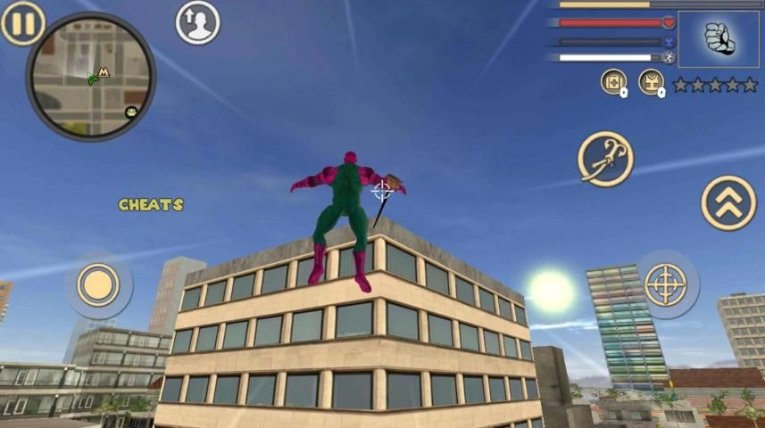 You have special real powers. You can shoot dangerous laser beam from your eyes. You can shoot a rope to a building and climb over the building to the top. Your legs also very powerful. Don't underestimate them. Don't mess with the police, they are the good ones. The style of city is similar to Miami or Las Vegas but actualy it's New York.