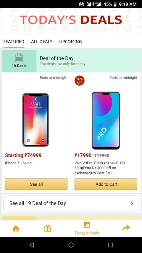 The Amazon India Shopping App brings to you, over 17 Crore original products, at great prices & deals. Shop on the Amazon App for the latest electronics – Redmi 5, Apple iPhone X, Samsung S8, OnePlus 6 & more, accessories - memory cards, earphones, chargers, power banks. Shop for your home needs and choose from selection across TVs, refrigerators, water purifiers, washing machines, sofa sets, mattresses, bean bags. Shop from Amazon Fashion for all occasions – Formal attire, vacation wear to casual and daily wear – shirts for men, sarees & gowns for women, watches, jewelry, shoes & footwear. Also, kid’s clothes, footwear, toys, bags, bottles & more. Recharge your prepaid mobile, DTH account and pay your electricity, postpaid, landline, broadband & gas bills with Amazon Pay. Download the Amazon India Shopping App for free, from Google Play Store & enjoy online shopping like never before.