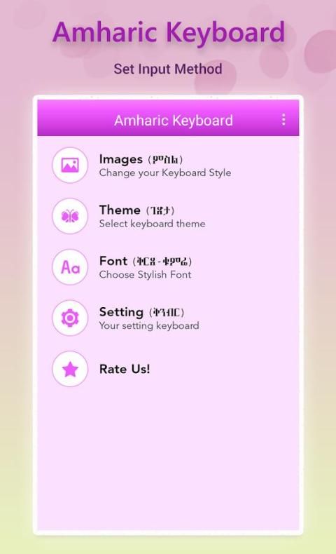 Keyboard Amharic dirancang dalam tema yang berbeda indah, Anda akan menemukan luar biasa eye catching tema dari Amharic Keyboard.