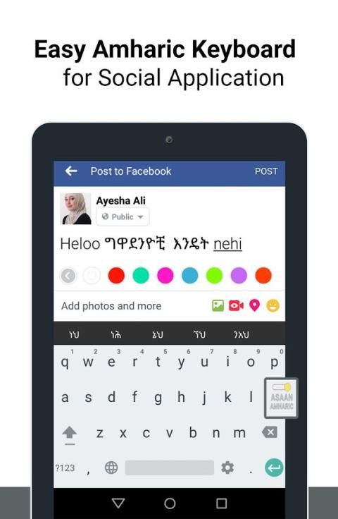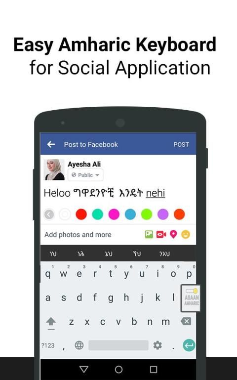 Ambil Amharic Keyboard ini Gratis untuk Android dan menikmati mengetik gratis pada semua platform sosial hanya dengan satu ketukan.
