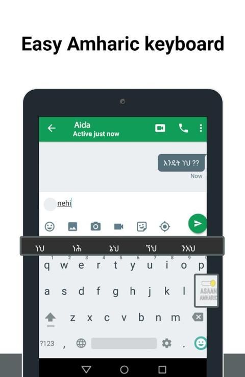 • Saat mengetik kata-kata Amharic keyboard akan memberikan saran sehingga mudah untuk digunakan.